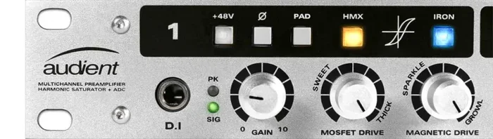By using discrete MOSFET technology HMX produces asymmetrical harmonic distortion, giving you the option to add richness and body to the pristine tone of the Audient mic preamp.