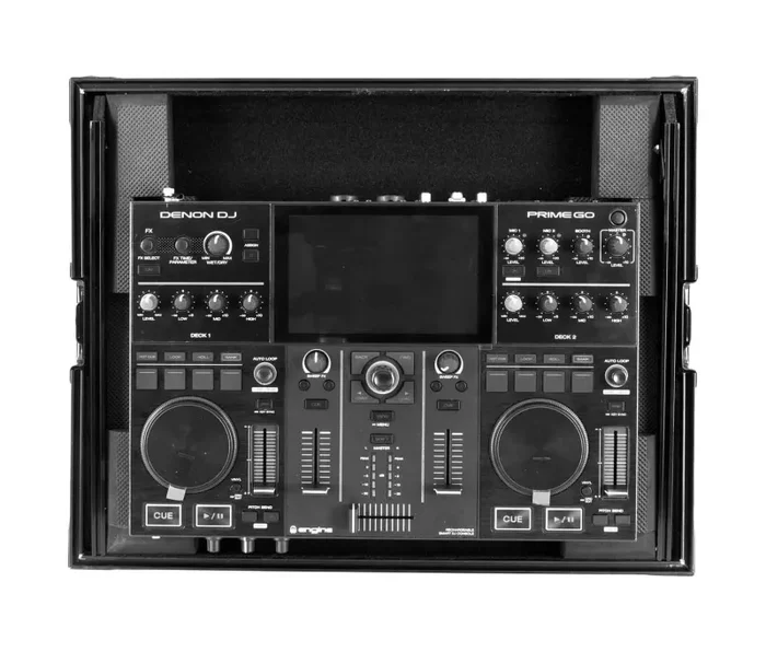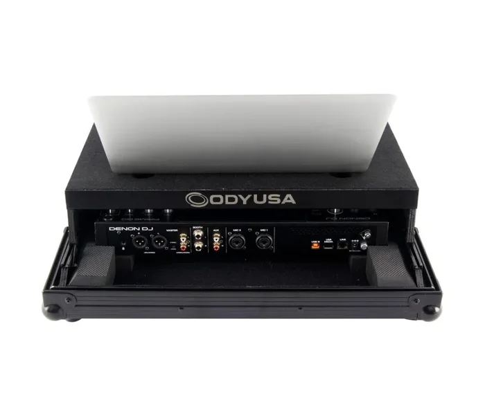 The Odyssey FRGSPRIMEGOBL is a Denon DJ prime go black label case with glide style laptop platform. glide platform port hole, rubber feet. This case constructs with all-black anodized and powder-coated hardware.