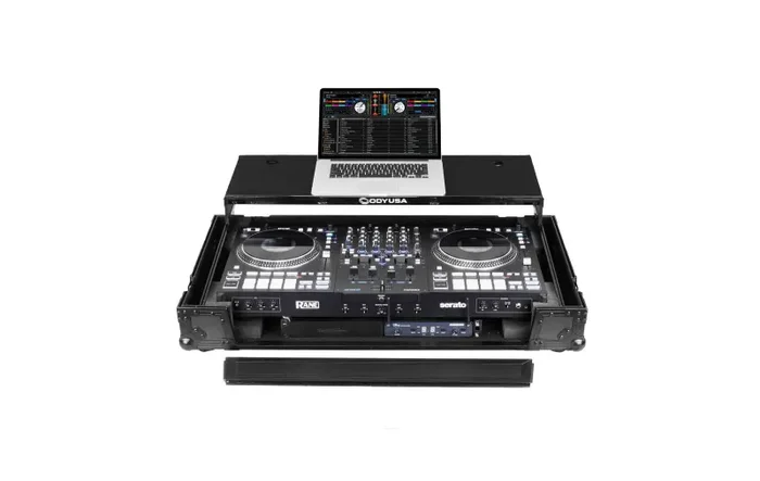 The Odyssey FZGSPERFORMERW1BL is a premium Black Label flight case specifically designed for the RANE PERFORMER setup. Featuring a Glide Style laptop platform and built-in roller wheels, this case offers both convenience and protection for mobile DJs and performers. Constructed with all-black anodized and powder-coated hardware, it provides a sleek, professional appearance while ensuring durability. The case includes a cable port hole, edge handles, a removable panel, and foam lining to secure your equipment. The Glide Style platform ensures easy access to your laptop, while the roller wheels make transport effortless. Please note, the RANE PERFORMER is not included.