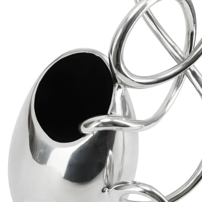 Details: Chrome vase with looped handle.