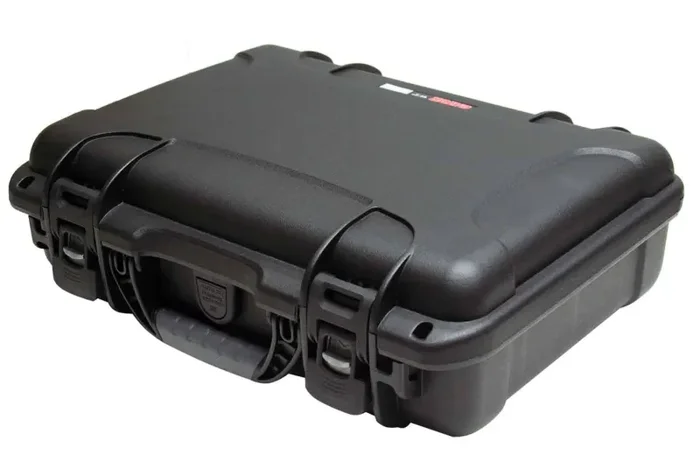 The Gator Cases GU-1309-03-WPDF is a Waterproof Injection molded case, with interior dimensions of 13.2 x 9.2 x 3.8 inches. Carry Case for Audio Visual Recording Equipment, Electronic Equipment, and Optical Lenses. Water and Dust Proof with IP 67 Certification. ATA-300 Certification. Impact Proof Lightweight NK-7 Resin. Easy Release Powerclaw Latching System. Soft Grip Comfort Handle.