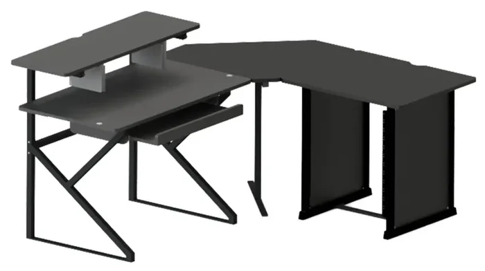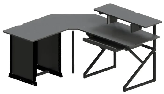 This is Gator Frameworks GFW-DESK-SET is a Desk Set for Content Creator. It includes Main Desk, Corner Section, and 12U Studio Rack Table.