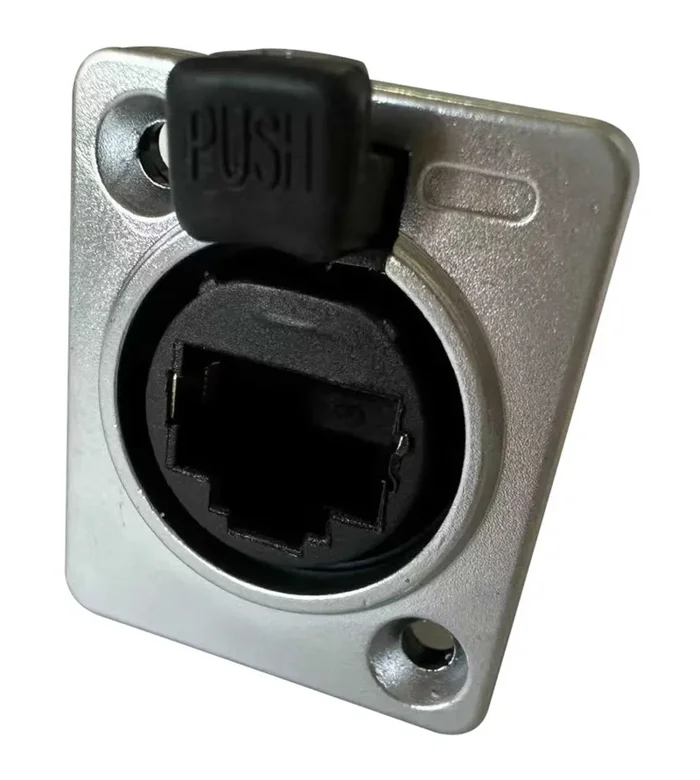 The ProX XC-RJ45-FFP, Single Ethernet Feed Through D-Series Panel Mount Jack Pass Through CAT6 fits the d-type punched holes and is compatible with most brands of Rackmount Panels, Cases, and IT network gear that has D-Series punched holes. It’s very durable and has a solid metal chassis and protection to meet the needs of touring professionals to weekend warriors. Simple to operate, it can be mounted with a screwdriver and the included set of screws (with each mount). This panel mount allows precision audio, video, and data signal.