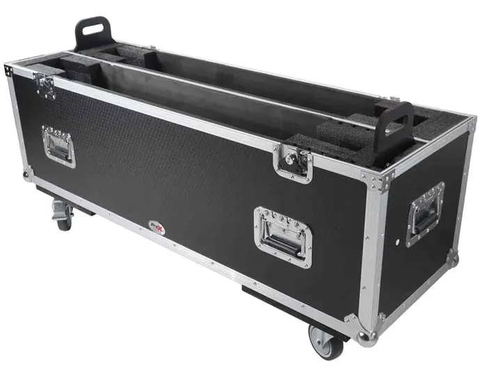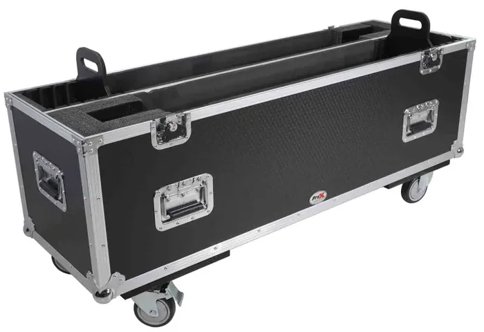 The ProX XS-LCD4350WX2 is constructed with our rugged signature 3/8″ Gig-Ready Series Plywood, durable rubber wheels, reinforced steel ball corners, as well as recessed steel padded handles and latches. This Universal case has an adjustable sidewall to accommodate TWO screens from 43″ up to 50″ in size. Locking heavy-duty caster wheels help to secure stability while loading and unloading electronics. Additional EVA foam padding helps secure TV in place while protecting the device from bumps and scratches. Our TV road crates help keep Flat Panel Monitors, Plasma, LED, and LCD screens safe from damage during transportation. For the safety of your equipment, do not attempt to transport with any gear not properly loaded into the case. Handles are retractable for better space utilization and loading. Exercise care when loading, unloading, and rolling cases.