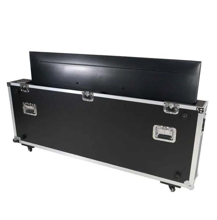 The ProX XS-TV4350W ATA Flight Style Road Case for 43″ to 50″ LED TV with Wheels and Foam Blocks. Adjustable Case with Low profile wheels. If you have a passion for your gear and want to keep it safe at all times, this case will perform at the highest level every time. The XS-TV5565W is constructed with our rugged signature 3/8″ Gig-Ready Series Plywood, durable rubber wheels, reinforced steel ball corners, as well as recessed steel padded handles and latches.