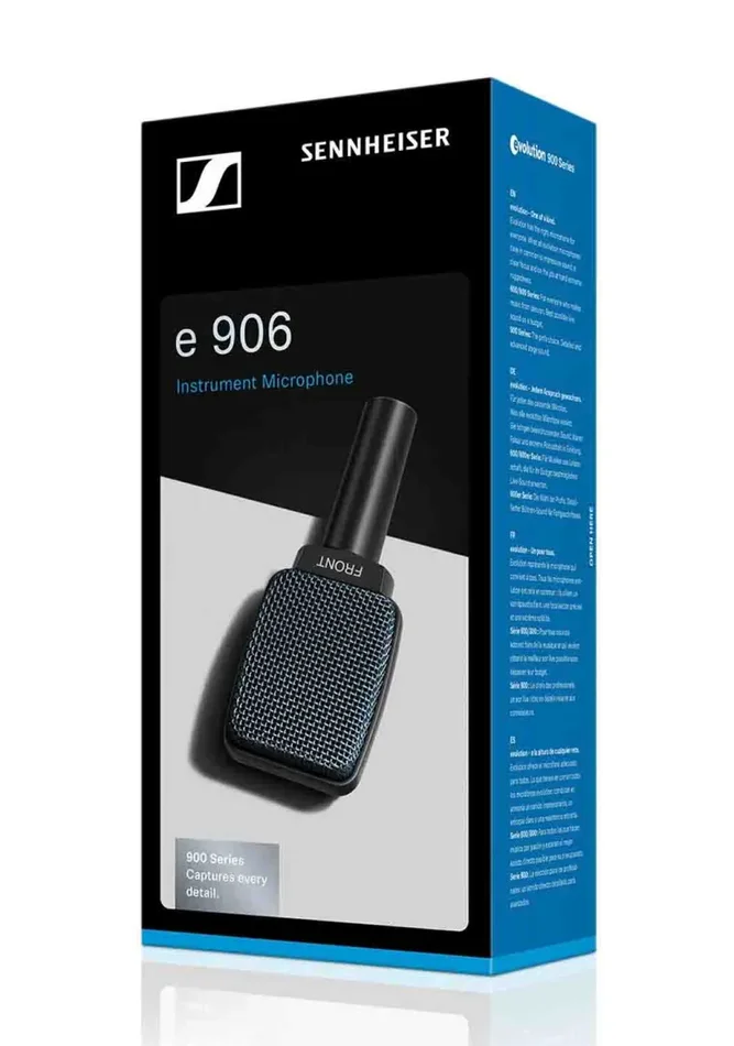 The Sennheiser E 906 is a Supercardioid Dynamic Instrument Microphone. The cardioid e 906 instrument microphone was specially designed for guitar amps and is also excellent for percussion and horns.