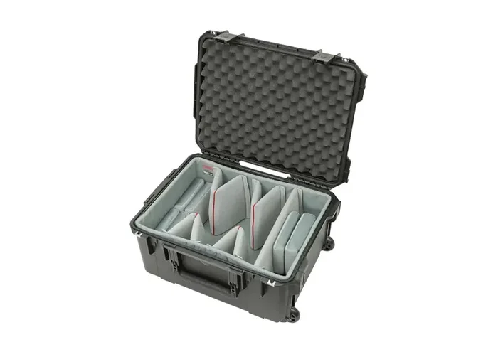 The 3i-2015-10DT is watertight and dustproof, and features a deluxe 8″ deep closed cell fitted foam liner, (4) heavy duty hinged dividers, (6) closed cell foam pads, and (1) heavy duty divider, all of which are Nylex-wrapped and designed with heavy duty hook-and-loop tabs to create the perfect fit. This case also features built-in wheels and a convenient pull handle for easy transport.