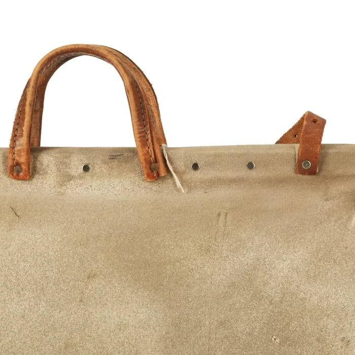 Tan / Brown Vintage Duffle BagDetails: Vintage tan duffle bag with brown handles and straps. Visible wear, rented as is.