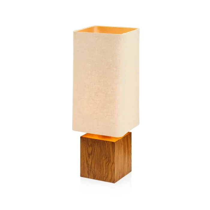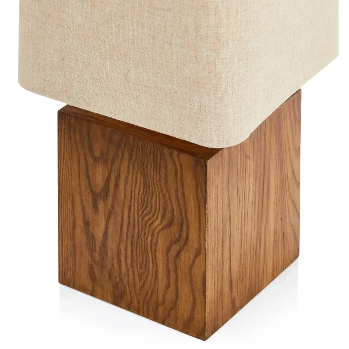 Wood Block Table Lamp w/ Tall Beige Rectangular Shade