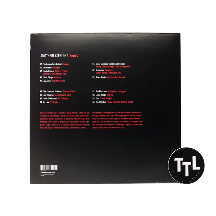 “An ocean of water has passed under the Zero 7 bridge since we originally issued this collection of music. The selection is compilation perfection – and you seem to agree. Such is the desirability of the original vinyl edition, it’s now selling for over a ton. You can expect to find the Stylistics’ soul classic, ‘People Make The World Go Round’ and the rare groove bomb produced by Roy Ayers, ‘You Can’t Turn Me Away’ by Sylvia Striplin. Don Blackman’s ‘Holding You, Loving You’ is included. This tune was sampled by Slum Village on ‘Go Ladies’ who also make an appearance here with ‘Jealousy’, as does Herbert’s boompty-boomp rub of M. Gainsbourg’s ‘Bonnie & Clyde’. All of this goodness for how much?! Bargain! Keep the rest of the money for a session in a floatation tank, just one of the better ways we can think of consuming this vinyl edition. As they say in football, ‘form is temporary, class is permanent’ – Zero 7: class personified.” – Late Night Tales